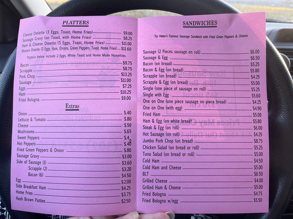 Helen's Sausage House, located in Smyrna, Delaware, is a legendary spot known for its consistently delicious sausages. This casual eatery offers a variety of sausages served on buns, perfect for breakfast or any time of day. Customers rave about the friendly staff and the old-school charm of the establishment. While they only accept cash, the food and ambience make it worth a visit. Highlights include the breakfast sausage special with gravy and the popular porkchop sandwich. The secret to their tasty dishes lies in their freshly made sausage, less than a mile from the restaurant. If you're in the area, don't miss out on a visit to Helen's Sausage House for a true taste of quality sausages on the east coast.